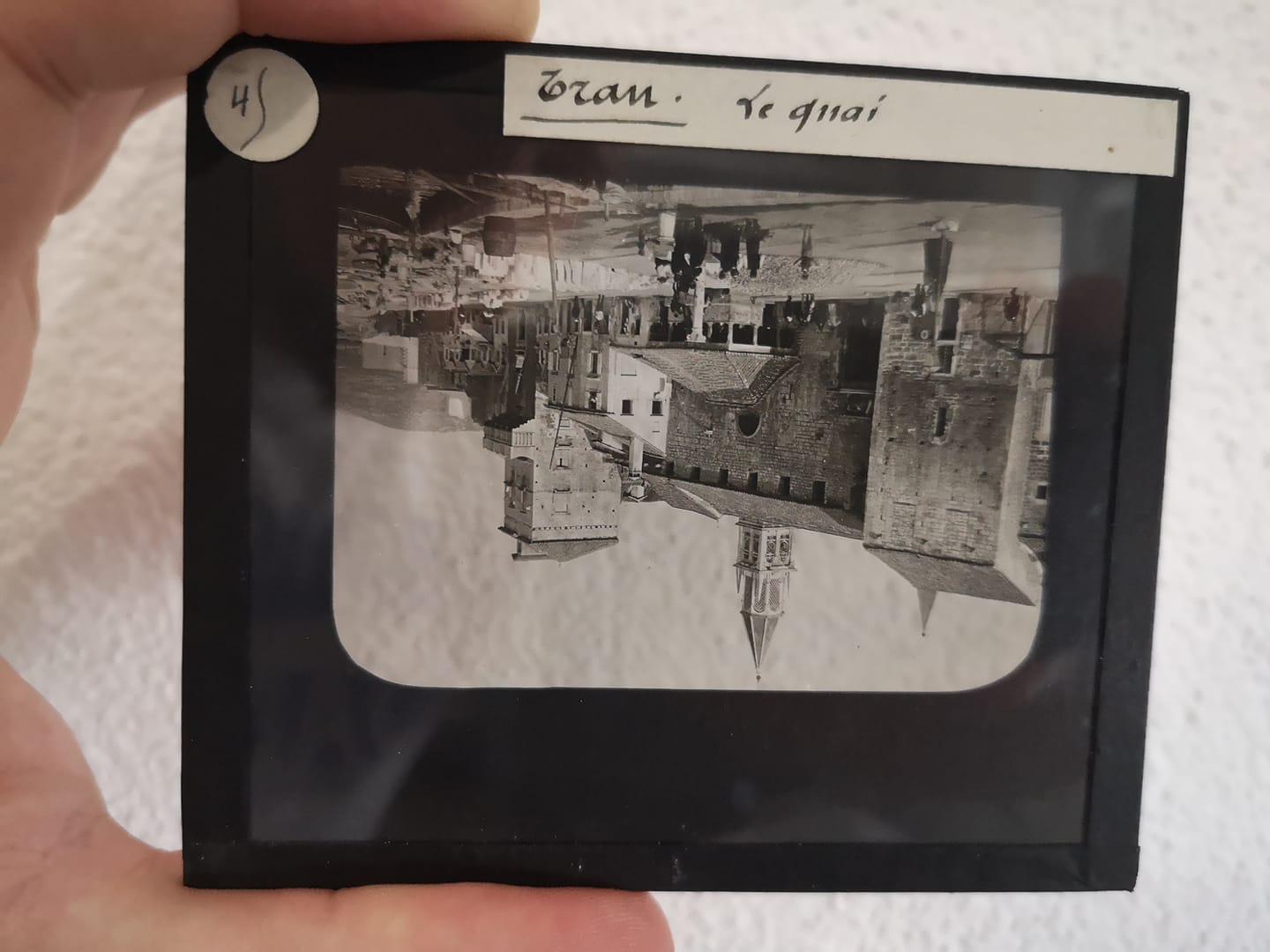 Još jedan stakleni pozitiv iz 1900tih. Interesantna fotografija, vidimo zgradu koja je srušena i od njenih ostataka napravljen sud, na rivi ako se ne varam kamene gromade čekaju ukrcaj.
